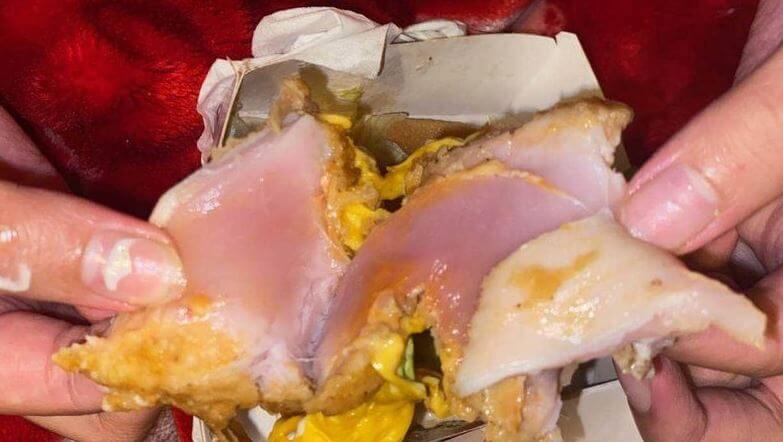 - Sarah Screw purchased a McSpicy Bacon Deluxe and found the chicken patty to be completely raw.