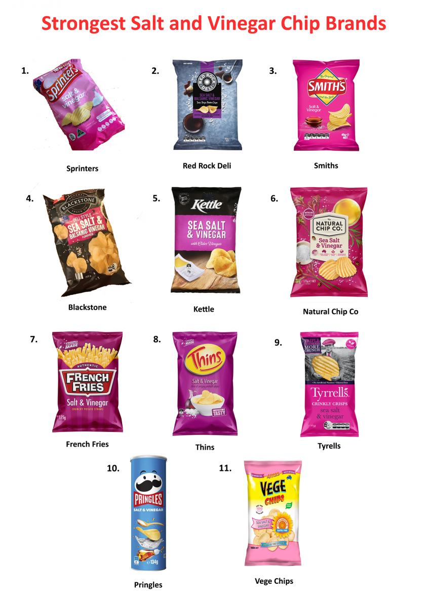Enthusiasts who like their salt and vinegar chips strongly flavoured might have debated amongst themselves which of the brands available in Australia is the most intense. One Aussie attempted to determine which has the strongest flavour once and for all by putting 11 options to a taste test.