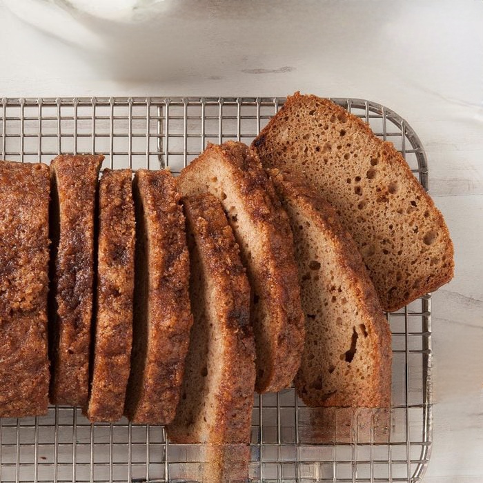- Transfer to a greased 9x5-in. loaf pan. Combine brown sugar and remaining 1/2 teaspoon cinnamon; sprinkle over the top.
