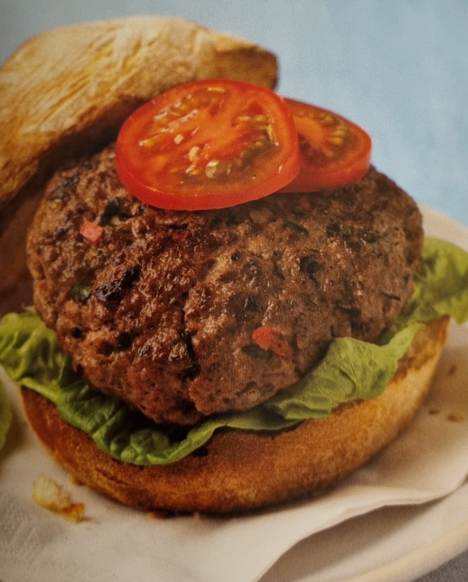 3. Serve 2 patties hot on a bun with fresh tomato and crispy lettuce.