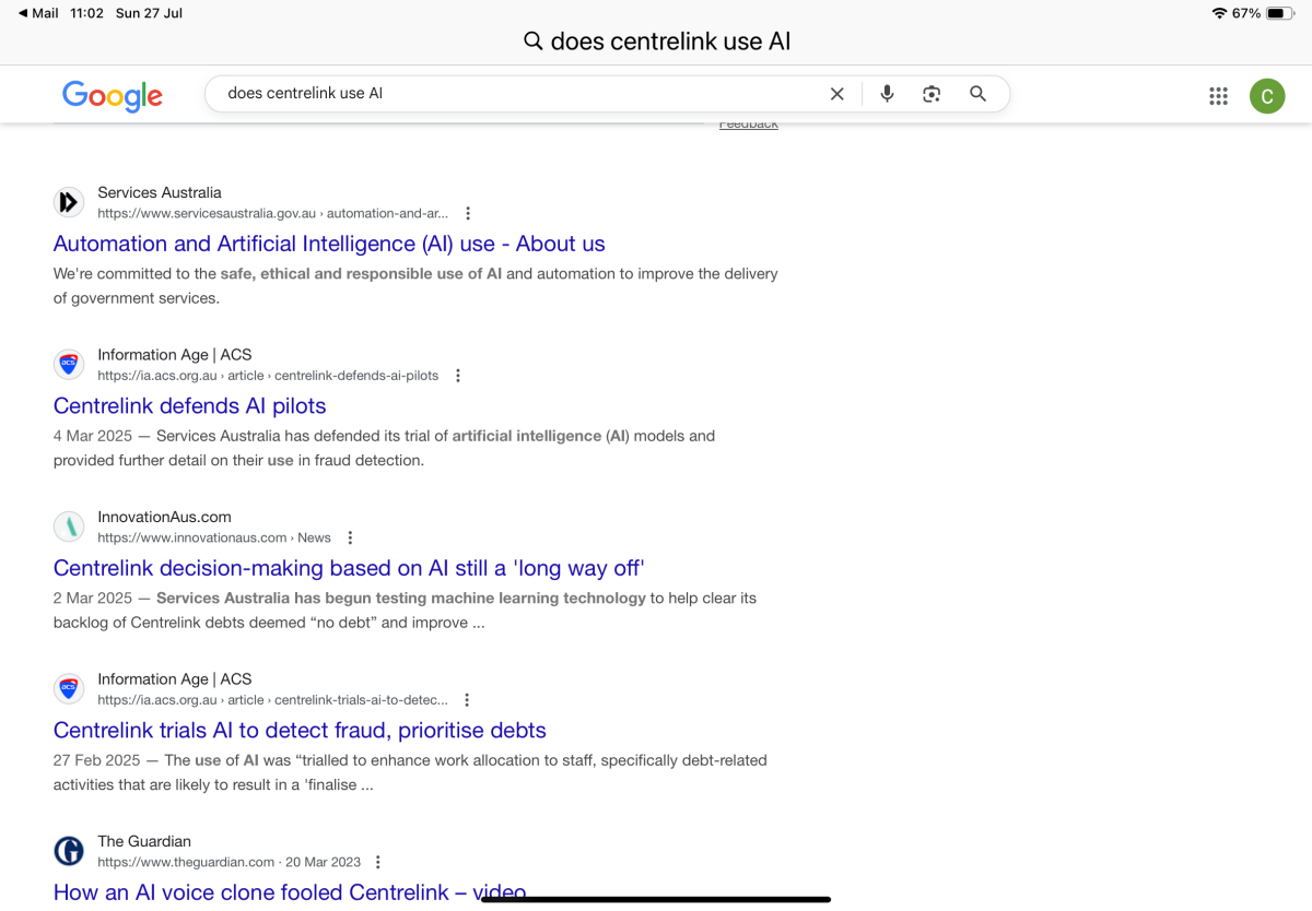 Services Australia is already using it…. I’ve just taken a screenshot of where you can find information, if you’re interested..