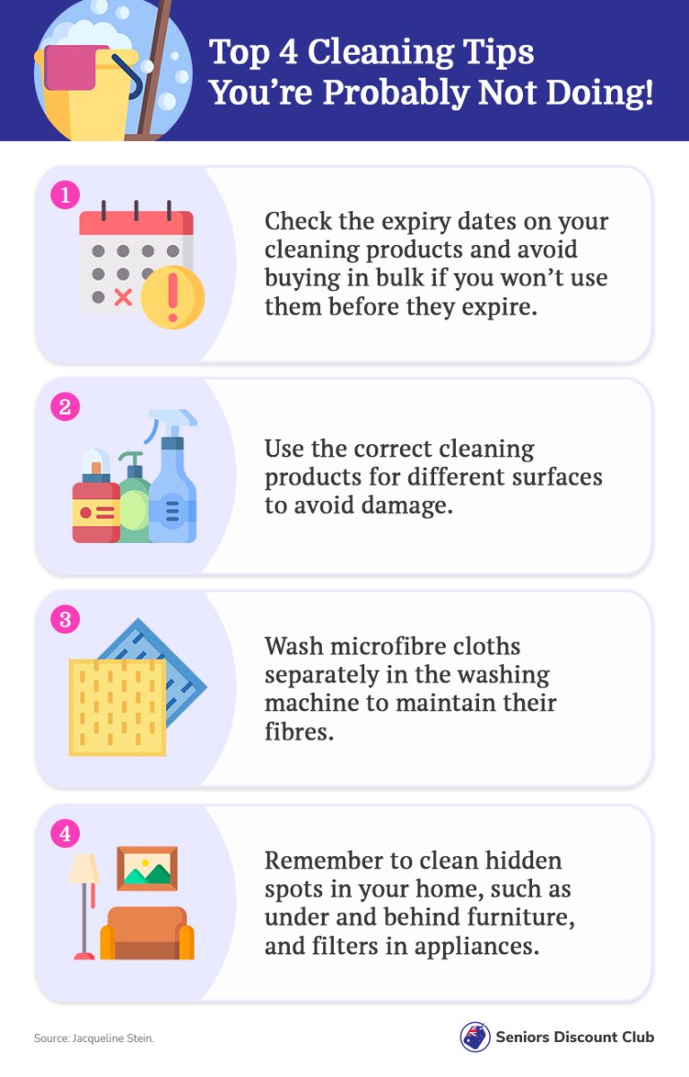 From checking expiry dates on cleaning products to washing microfibre cloths separately and remembering to clean hidden spots in our homes, these tips are sure to make our cleaning routines more efficient and effective.