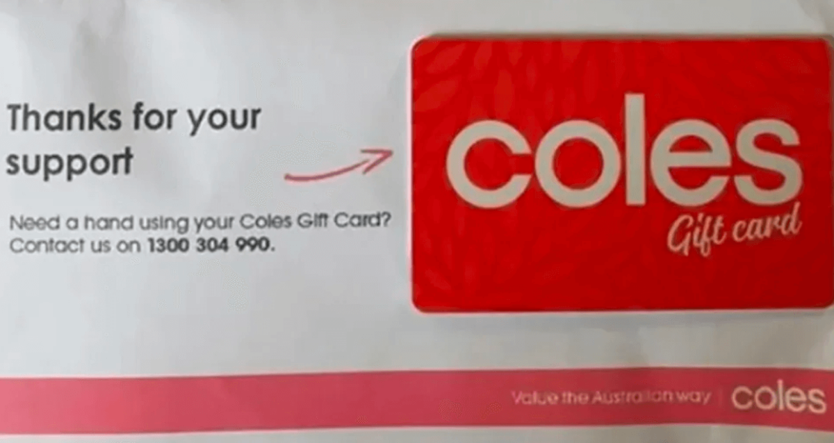 • Several Coles customers have enjoyed an unexpected boost to their grocery budgets with surprise gift cards in the mail.