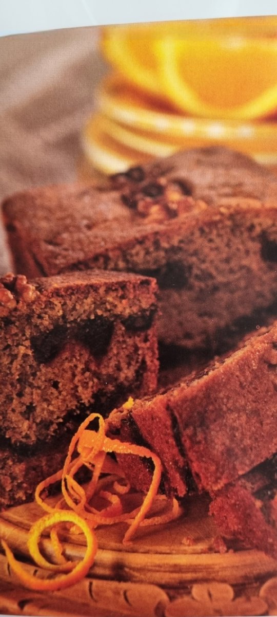 5 Arrange the 8 walnut halves on top . Bake in preheated oven for 1 to 1 1/4 hours until risen and soft to touch. Cool in pan for 10 minutes. Turn out onto a wire cake rack and cool .