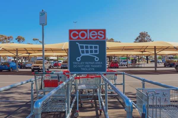 A new security measure at Coles causes trolleys to be locked up and unable to move. Credit: Rusty Todaro/Shutterstock