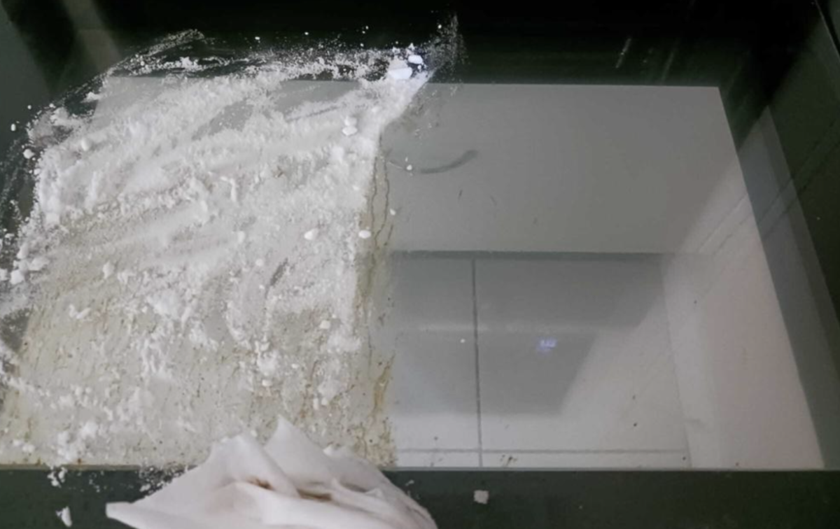 How did she ‘sprinkle’ bi-carb on a vertical surface, I’d like to know.