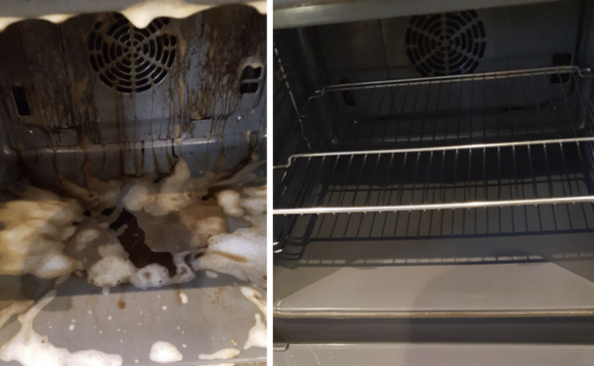 • She explained the clean-up process in the comments, stating she sprinkled bi-carb on a wet cloth, let it sit for 15 minutes, and then wiped down her oven.