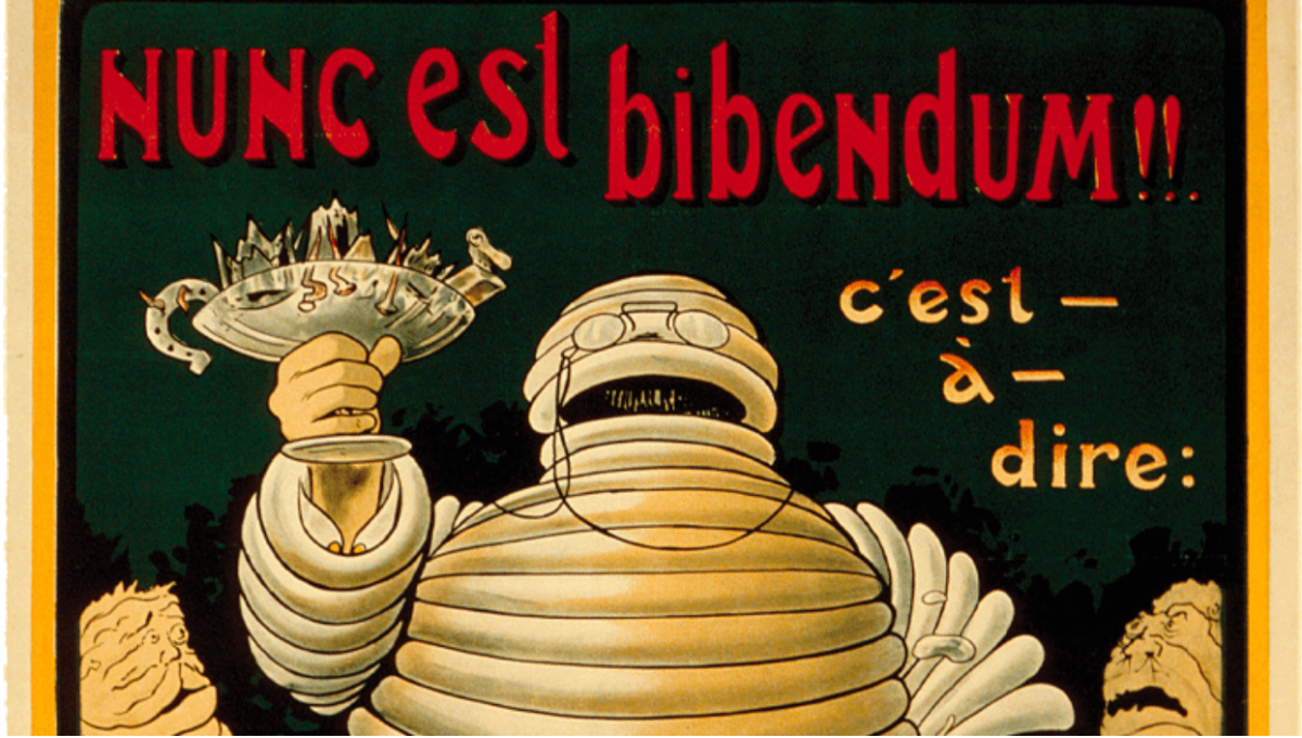 Early advertisements featured Bib alongside the Latin phrase 'Nunc est Bibendum', which translates to 'now is the time to drink'. This catchy slogan became the Michelin Man's signature phrase and helped establish him as a recognisable figure.