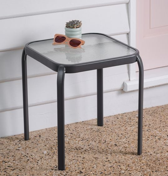 Add modern style to your outdoor space with the Marquee Square Glass Top Steel Side Table from Bunnings. Durable, easy-to-clean tempered glass top and powder-coated steel frame. Get yours for $25.62, includes 12-month warranty.