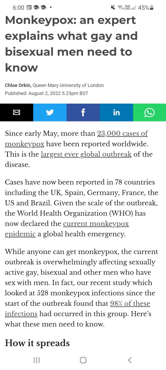Monkeypox has been declared a public health emergency by the World Health Organisation (WHO), and the USA’s Department of Health and Human Services. This does not mean that we’re all in imminent danger of being infected but it does serve to call attention (and resources) to prevent it from becoming so.