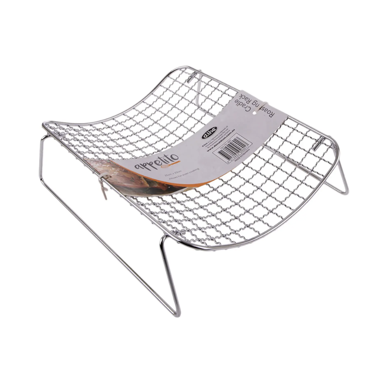 Elevate your roasts with this sturdy Cradle Roasting Rack from Kitchen Warehouse. It ensures even cooking, easy lifting, and fits most pans. Priced at $19.95 for reliable roasting every time.
