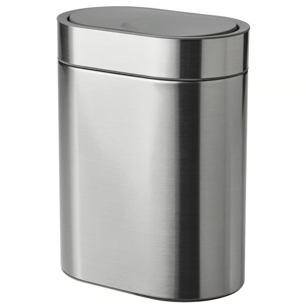 Keep your space tidy with the IKEA Stainless Steel Bin. Features a touch-top lid for easy opening and a sleek, durable design—perfect for kitchens or bathrooms. Available now for $25.