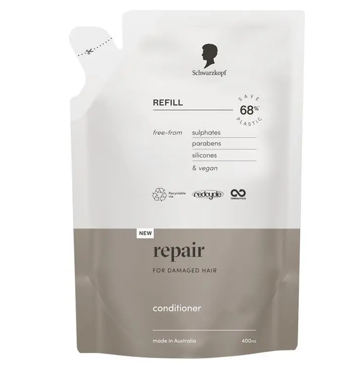 Schwarzkopf Sustainable Repair Conditioner Refill (400ml) strengthens hair by up to 90%, using argan oil and plant protein. Vegan, 95% naturally derived, and in a pouch with 68% less plastic. Get yours for $6.50 (down from $15.99) at Chemist Warehouse.