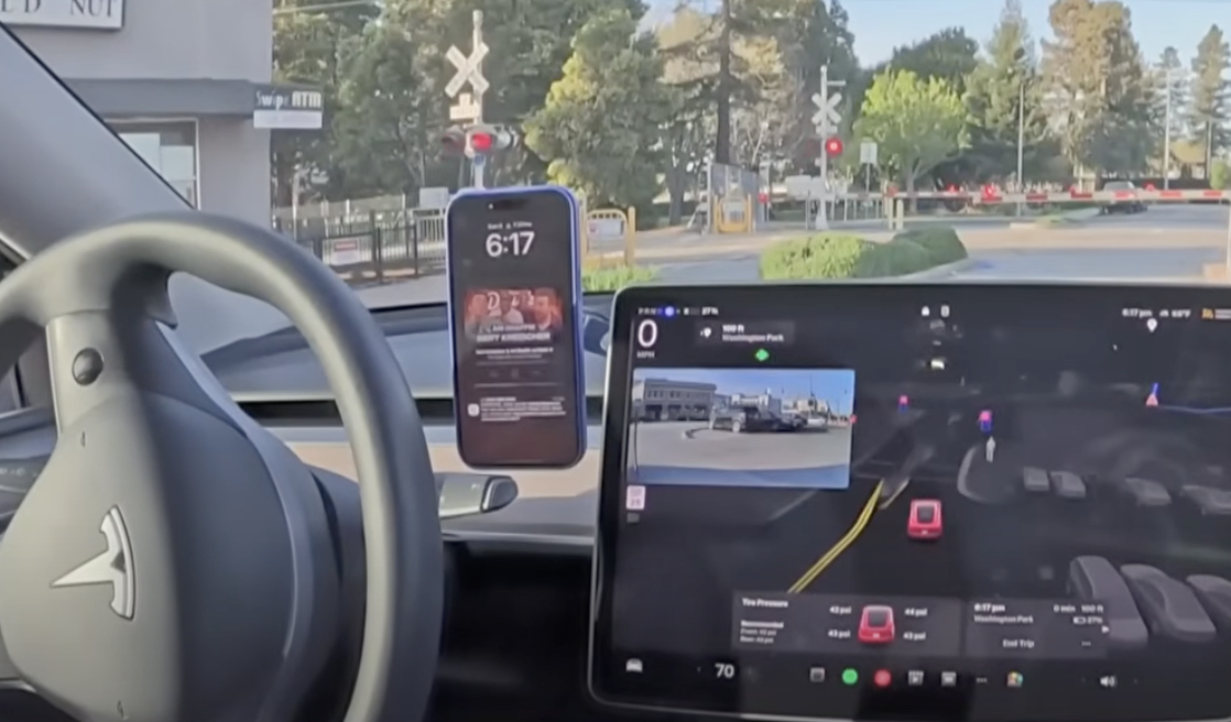 Must be legal over there in Trumpland to have your phone stuck up on your windscreen, obscuring part of your view of the road. Combine that with the pretty picture on display showing things in real time in front of you. A great distraction.