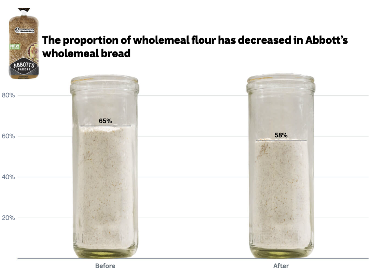 Abbott’s Bakery (George Weston Foods) said the reduction of wholegrain wholemeal wheat flour in its bread was made after “extensive research and testing” to improve the taste and texture, with more wheat flour and malt wheat flour introduced to the recipe.