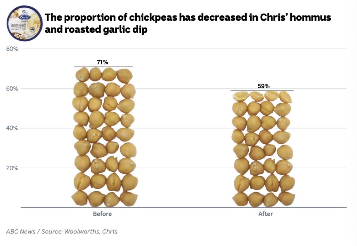 Chickpeas used to make up 71 per cent of the tub, but now only make up 59.