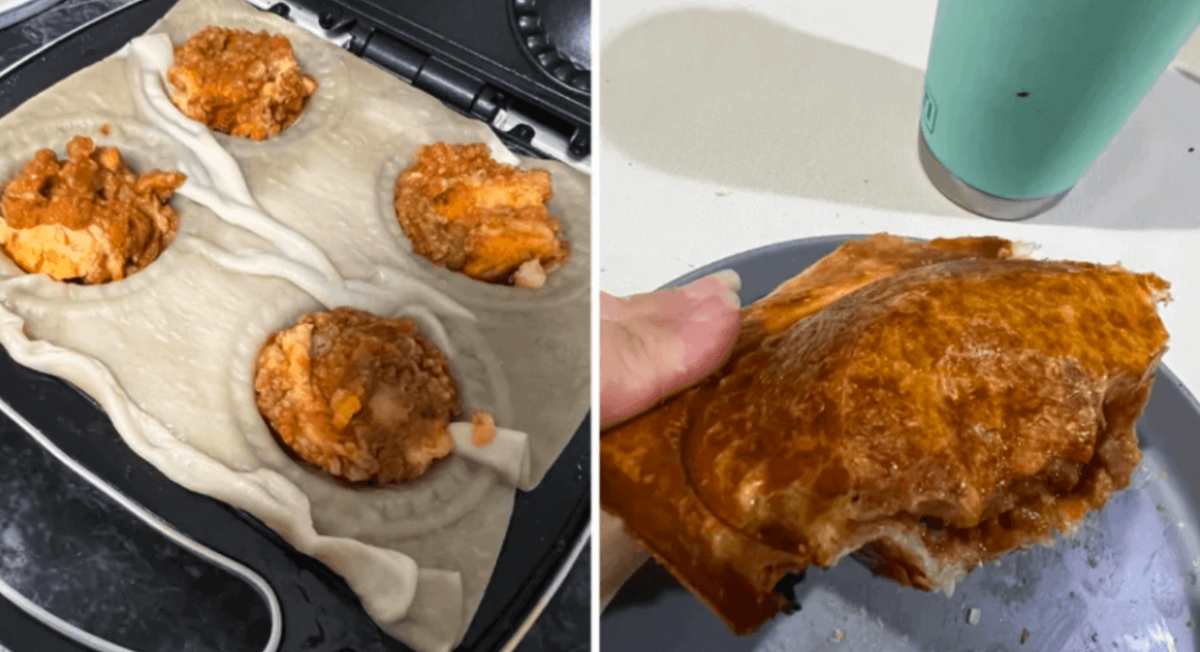 A mum shared her Kmart idea for making pies using a Kmart pie maker without cutting the pastry first. Credit: Facebook.