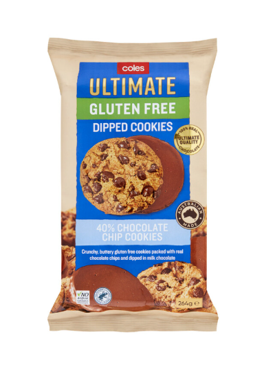 Excerpt: Coles' online store still lists 'Coles Choc dipped Ultimate 40% Chocolate Chip Cookie, dipped in creamy milk chocolate.'