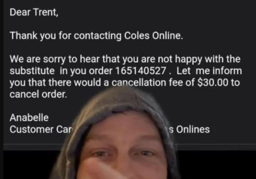 Sharing on TikTok, the Coles shopper – who uses the handle @trentjulien – vented his frustration at discovering a '$30 cancellation fee to cancel order'.