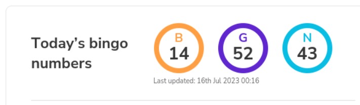 Numbers are in the daily morning email, see example below. But its easier just to open the bingo game and look for any flashing numbers (in a star) and these are todays numbers. If you didnt get any of todays numbers then naturally none will be flashing.