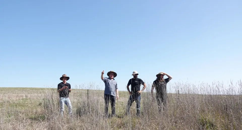 Researchers Ted Stein, Tim McGrath, George Madani, and Chad Beranek at the last known location of the dragon species. Image source: Sophie Frame