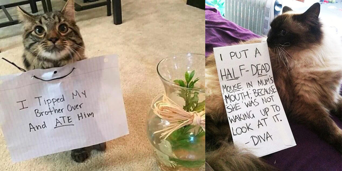 - Pet owners around the globe are shaming their naughty pets through hilarious handwritten notes.