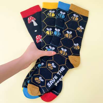 The company also creates special designs* inspired by the mission and values of the charities they work with. Each range includes vibrant, creative patterns—from the humble bin chicken to charming daisies and intriguing microbial designs—these socks are made to stand out and add a unique touch to any outfit.