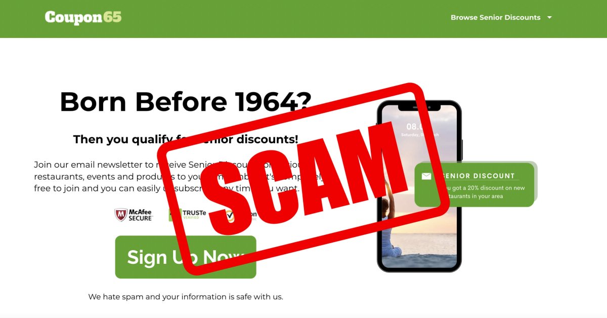 Thanks for the heads up!URGENT: Seniors Discount - Coupon65 Scam