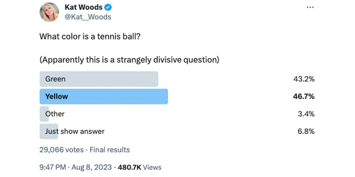 The debate resurfaced this week after a Twitter poll asked whether people saw a tennis ball as yellow or green.