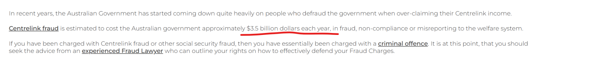 Centrelink fraud is only 9 million????? Hahahahahahaha. Again reading crap.