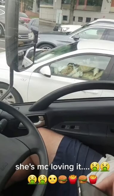 - A motorist was shocked by the state of a fellow driver's car which was littered with discarded McDonald's packaging.